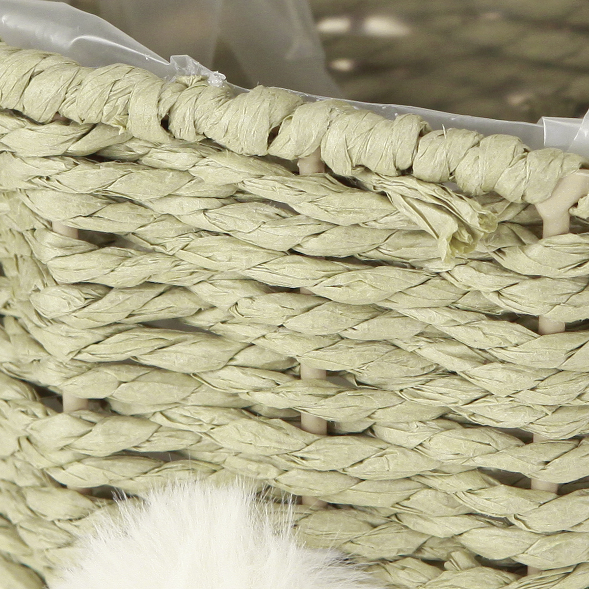 De groene kleur benadrukt de natuurlijke uitstraling van het materiaal en harmonieert perfect met fris groen, kleurrijke bloemen of paasdecoraties. Dankzij het geïntegreerde inzetstuk kunt u kleine plantjes zoals sleutelbloemen of narcissen direct in de mand plaatsen zonder deze te beschadigen. De mand is ook ideaal voor het bewaren van kleurrijke eieren, heerlijke chocoladekonijntjes of kleine cadeautjes. Voor een extra creatieve touch kunt u de mand versieren met kerstverlichting om een charmant middelpunt in huis te creëren. Hij staat bijzonder mooi op dressoirs, planken of als blikvanger in een paasdecoratie.