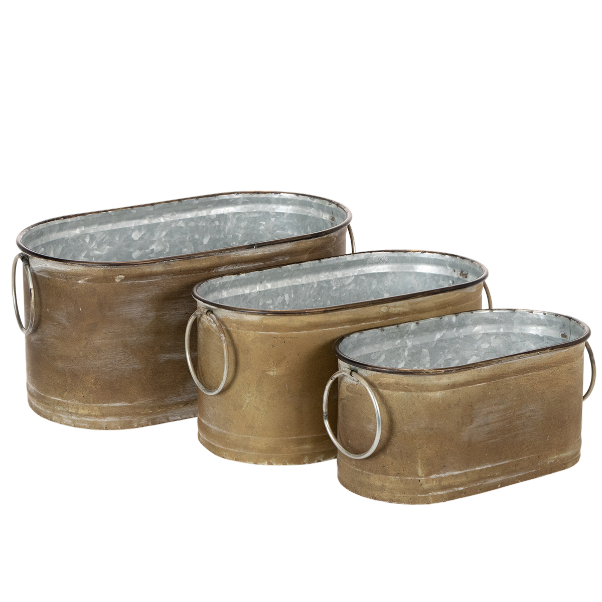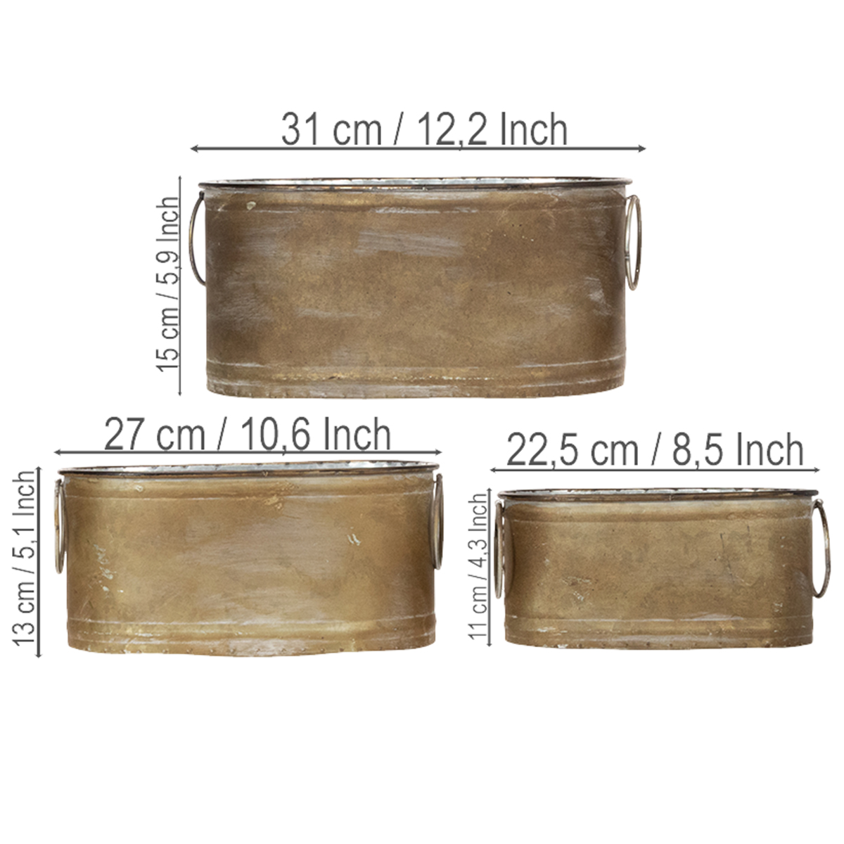 Set metalen plantenpotten en -kuipen, vintage retrostijl, L22,5cm/27cm/31cm