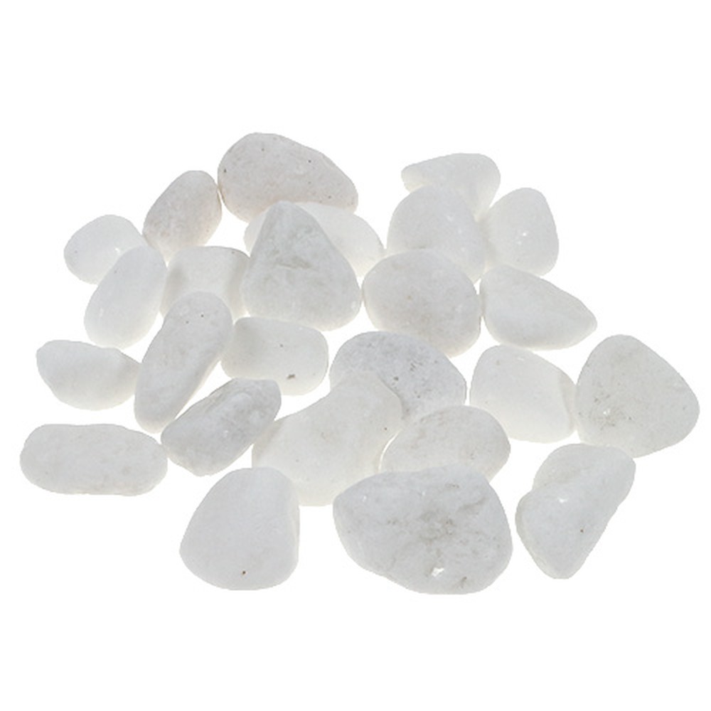 De decoratieve kiezels in wit worden geleverd in een net en het geheel weegt ongeveer 1 kilogram. Elke steen is individueel door de natuur gevormd en kan daardoor zo'n 1 tot 2,5 centimeter groot worden.