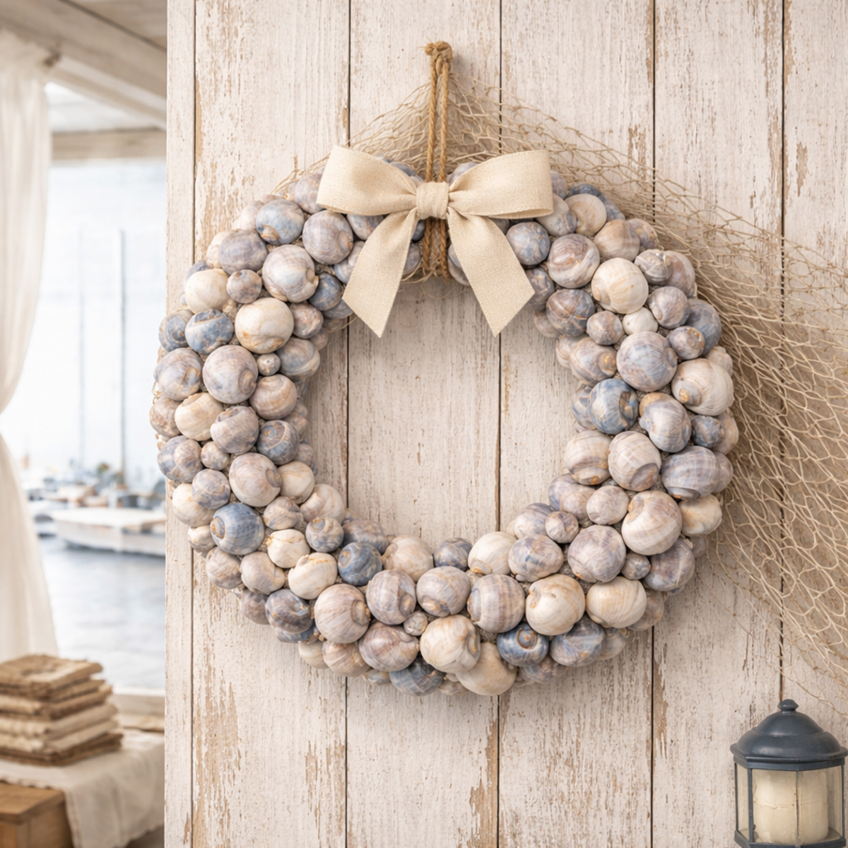 Slakkenkrans om op te hangen, decoratieve krans, maritieme stijl, Nathai, Ø35cm