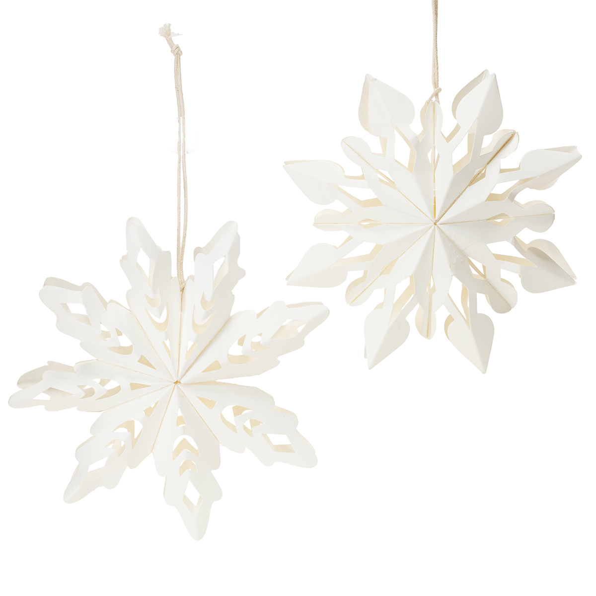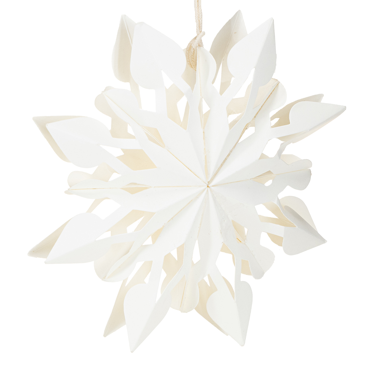 Deze witte papieren sneeuwvlokken vormen een opvallende kerstdecoratie, niet alleen visueel, maar ook dankzij hun hoogwaardige afwerking en gebruiksgemak. De sneeuwvlokken zijn gemaakt van stevig maar lichtgewicht papier en glinsteren net als hun natuurlijke tegenhangers – elegant en ingetogen. Dankzij de twee verschillende designs in de set krijg je twee verschillende stijlen die harmonieus gecombineerd kunnen worden.
