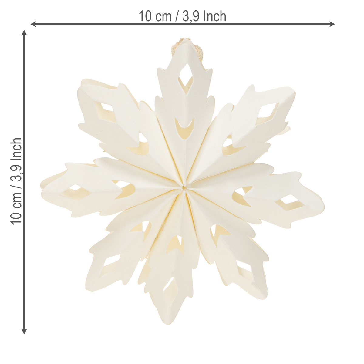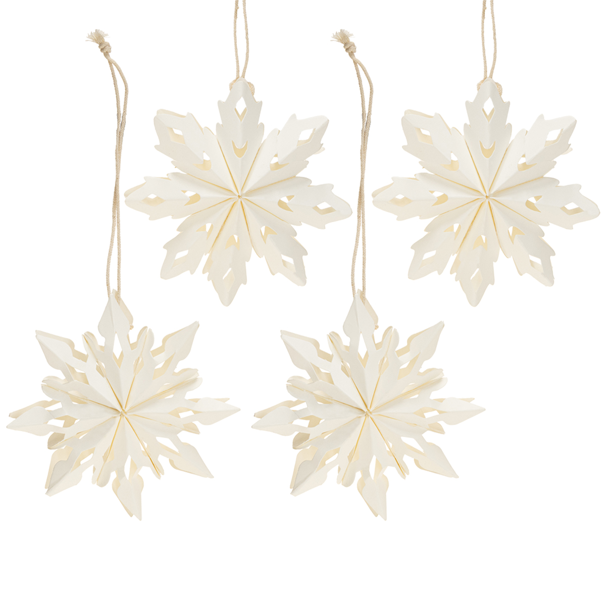 Sneeuwvlokpapierdecoraties om op te hangen, wit, 10 cm, 4 stuks