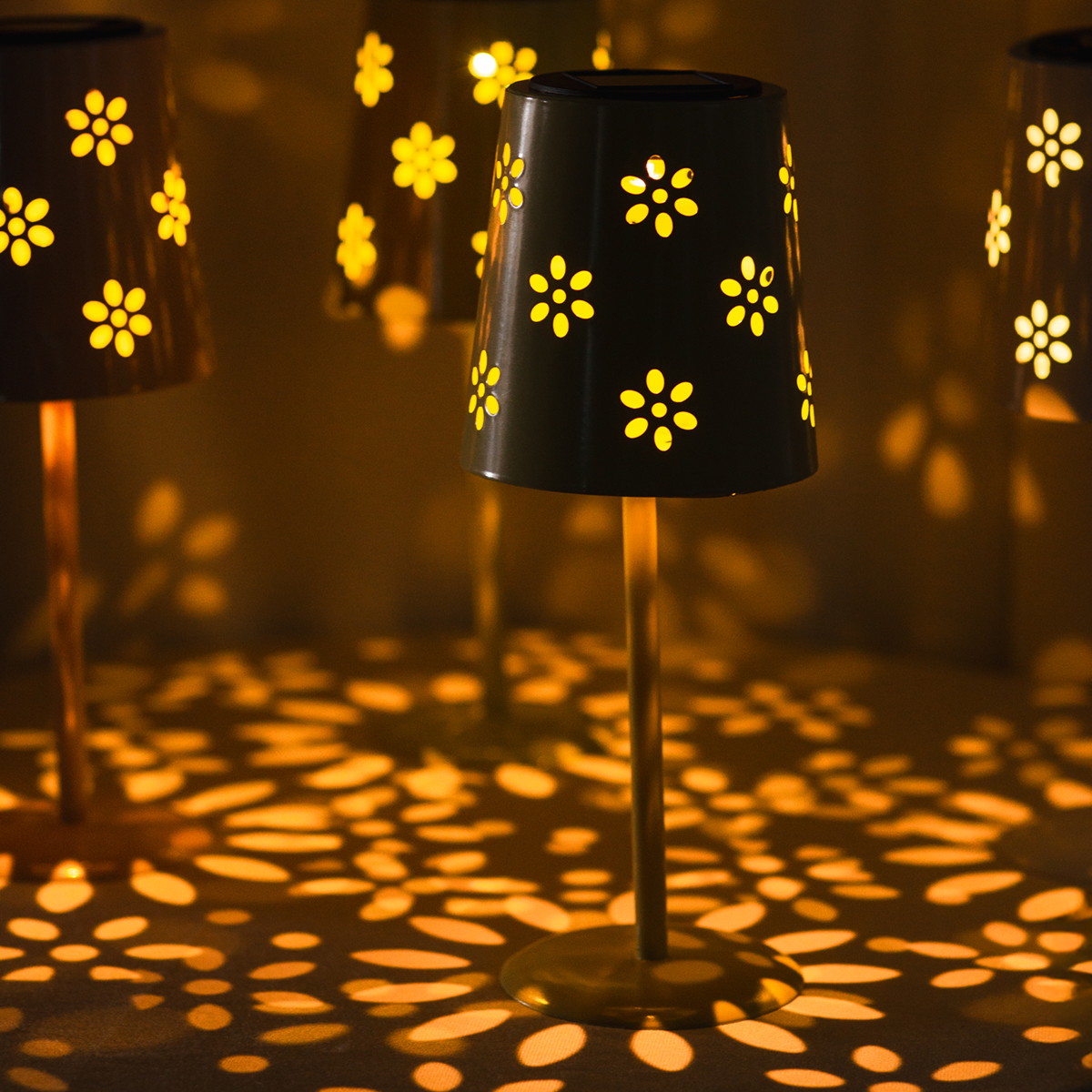 Productnaam: Solar tafellamp met bloemenpatroon voor verlichting op balkon, terras of in de tuin, 28 cm