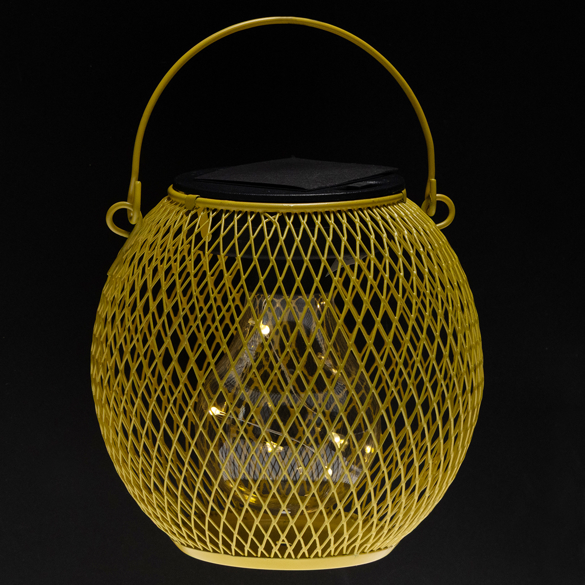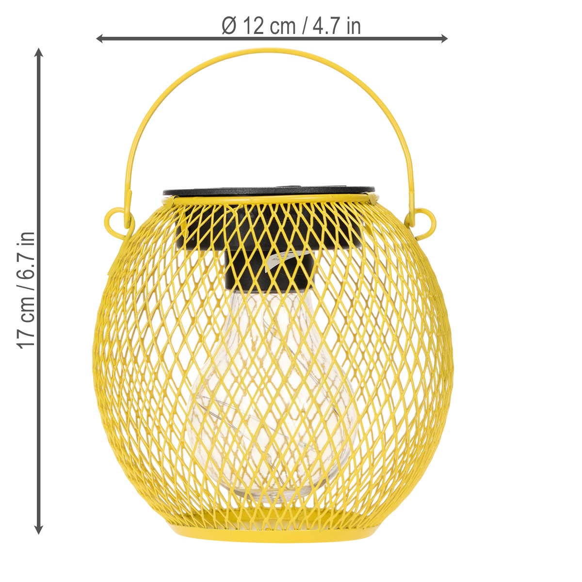 Deze solar lantaarn voor tuin en terras maakt indruk met zijn geslaagde combinatie van stijl en functionaliteit. Het moderne gaasontwerp geeft elke buitenruimte een unieke uitstraling. Het hoogwaardige metaal in zonnig geel straalt een uitnodigende en trendy sfeer uit. De lantaarn past bijzonder goed in een mediterrane omgeving of voegt een vleugje kleur toe aan een Scandinavische tuin. Dankzij de geïntegreerde handgreep is de lantaarn gemakkelijk te verplaatsen.