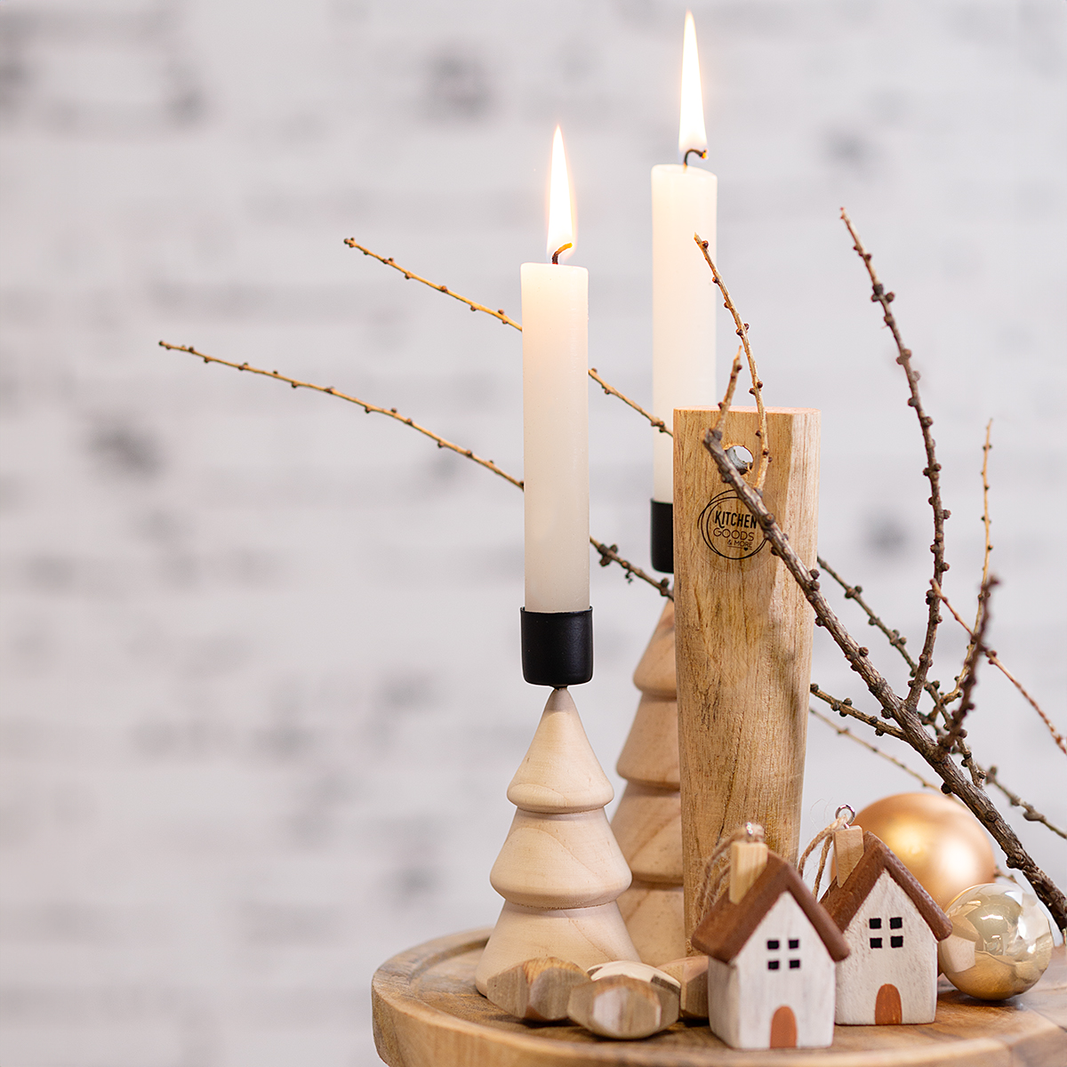 Houten kaarsenhouder als kerstboom voor natuurlijke kerstversiering