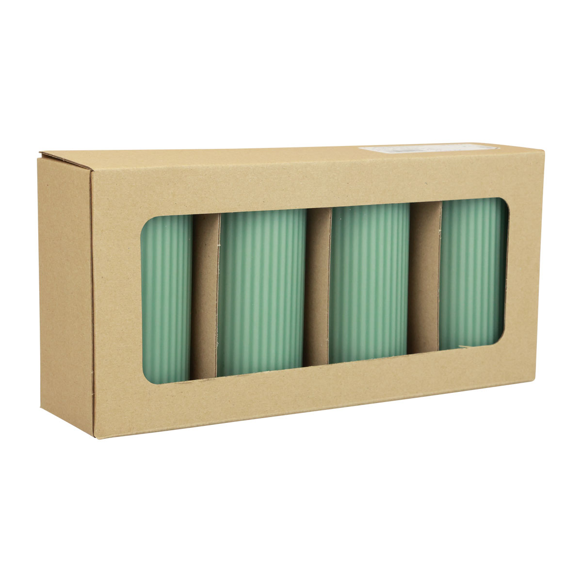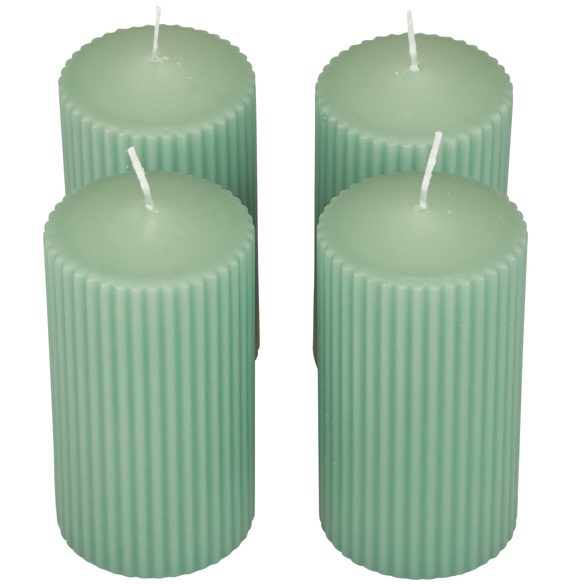 Stompkaarsen groene smaragd gegroefde kaarsen 70/130mm 4st
