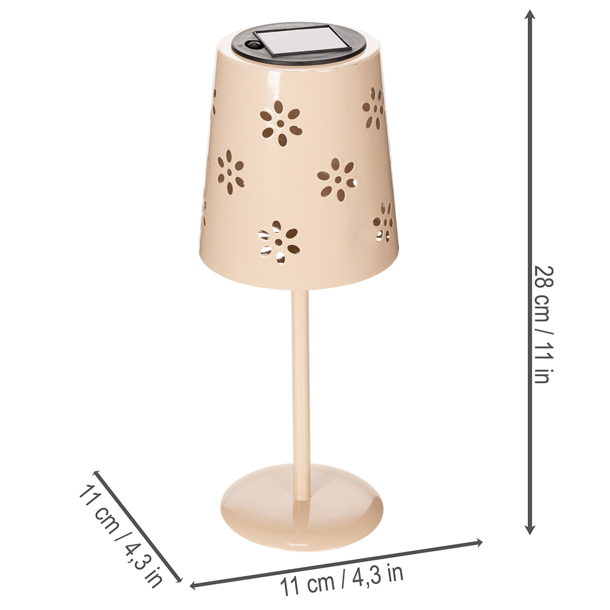 Productnaam: Tafellamp met bloemenpatroon, op zonne-energie, voor romantische tuinverlichting, 28 cm