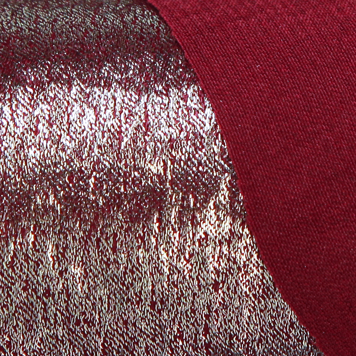 - Kleur: diep bordeauxrood met glanzende gouden draden aan één kant verfijnd