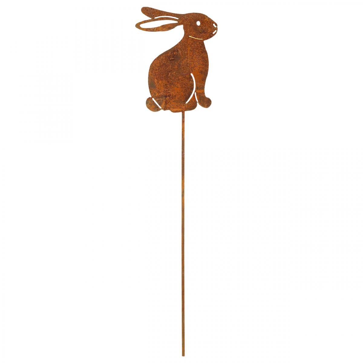 Productnaam: Tuindecoratie, roestig paashaasje, bloemsteker, metaal, 7×9 cm, 6 stuks