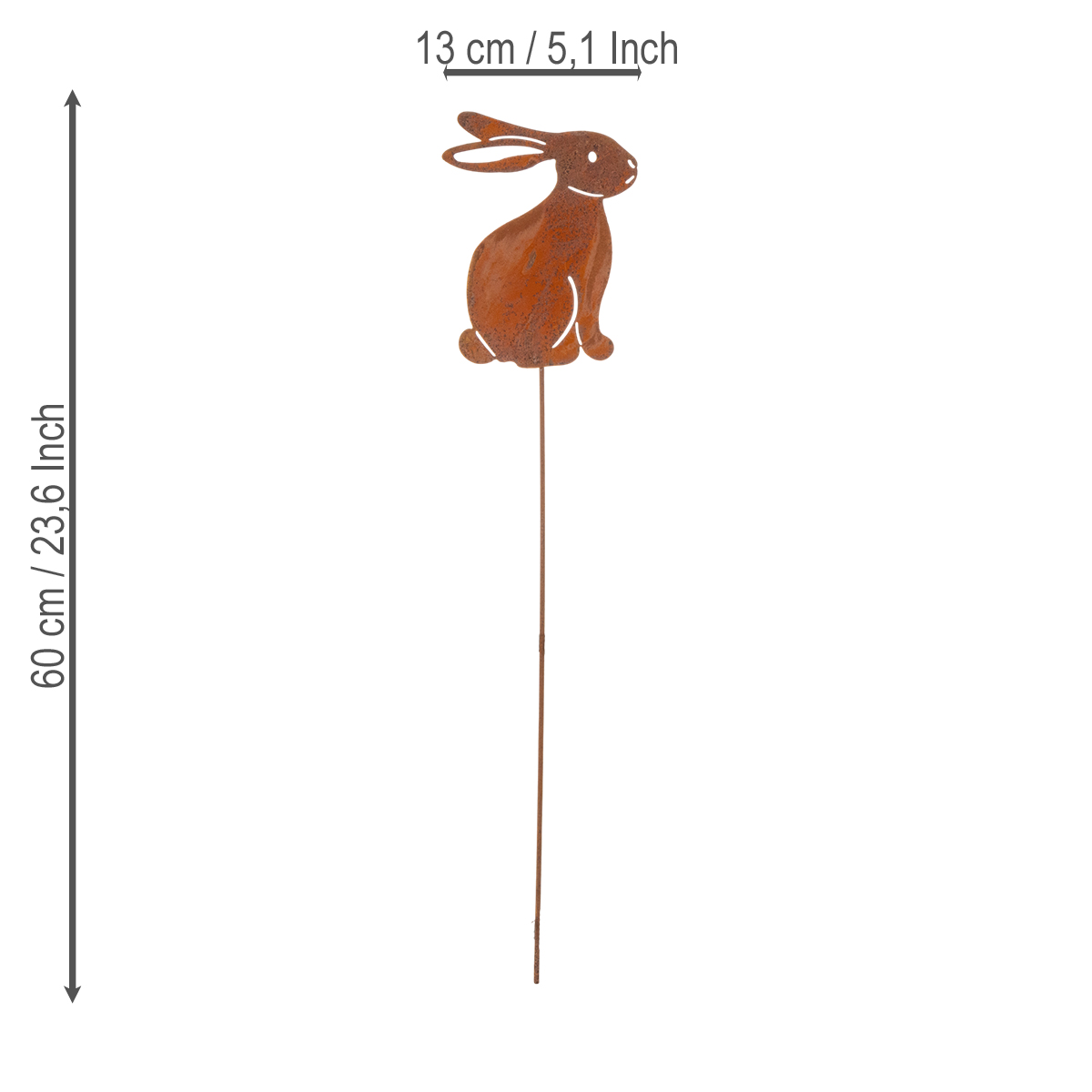 Deze konijnen, 60 cm hoog en met een licht verschoven steunpaal, kunnen eenvoudig en stevig in bloembedden, plantenbakken of als decoratie in de voortuin worden geplaatst. Dankzij hun eenvoudige maar opvallende ontwerp passen ze niet alleen perfect bij een landelijke inrichting, maar ook naadloos in een omgeving met vintage of shabby chic elementen. Gewoonweg prachtig als u de voorkeur geeft aan een natuurlijke uitstraling.