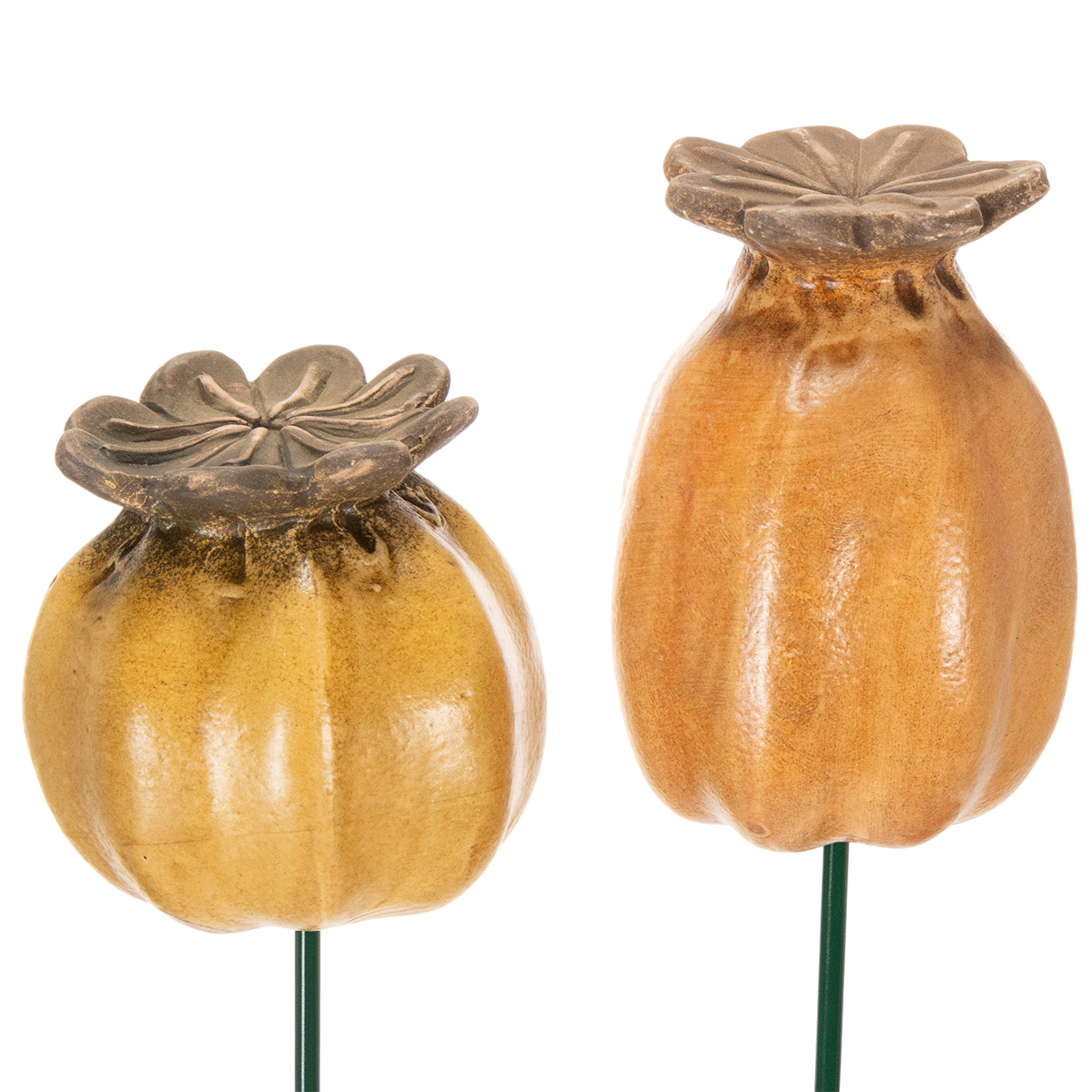 Tuinpaal in de vorm van een klaprooszaadpeul voor een stijlvolle tuin, bloembed of balkon, 60 cm, 2 stuks