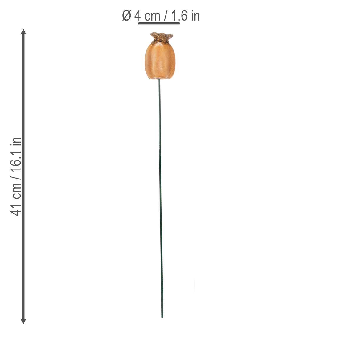 Tuinpaal met klaprooszaadpeul - decoratief accent voor tuindecoratie en doe-het-zelfprojecten - 41 cm, 4 stuks