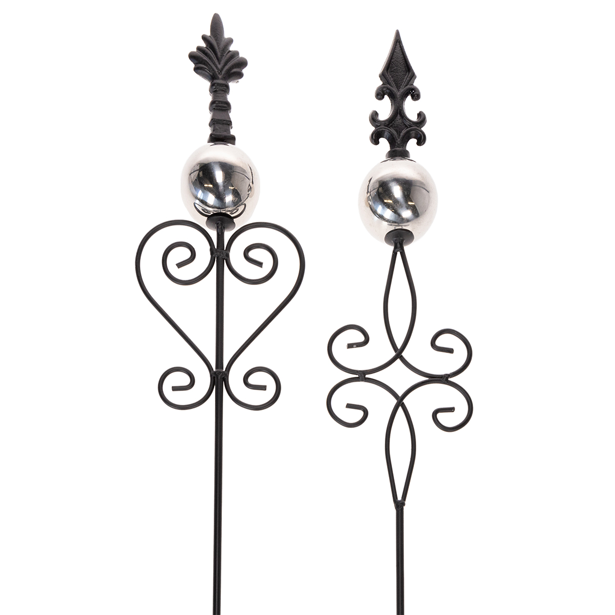 Tuinpaal met sierlijk ontwerp, decoratieve vorm en stijlvolle metalen bal, 90 cm, 2 stuks