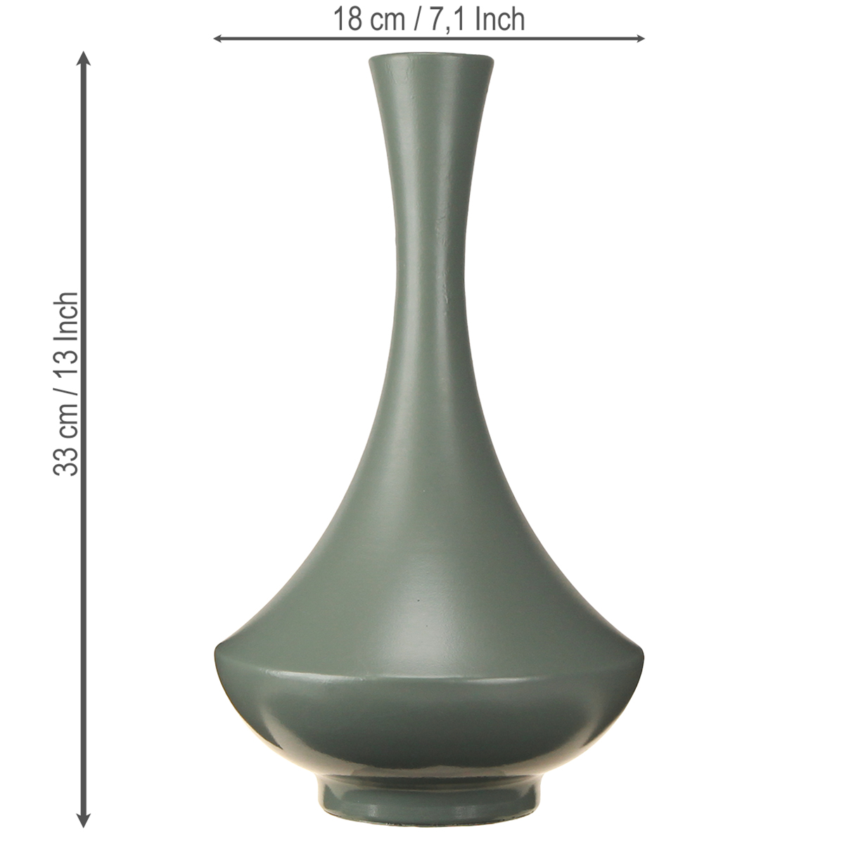 Deze decoratieve vaas betovert met zijn harmonieus gebogen vorm en hoogwaardige metalen afwerking. De matte groene afwerking is zowel ingetogen als elegant en benadrukt het moderne karakter. Of u hem nu gebruikt als middelpunt in de eetkamer, als decoratief accent op een dressoir of als stijlvol element op een bureau, de veelzijdigheid maakt hem een onmisbaar accessoire voor elk huis. Met een hoogte van 33 cm heeft hij de perfecte afmeting om naadloos in elke ruimte te passen en toch een statement te maken. Liefhebbers van een minimalistische esthetiek zullen er dol op zijn, maar hij combineert ook prachtig met andere decoratieve objecten.