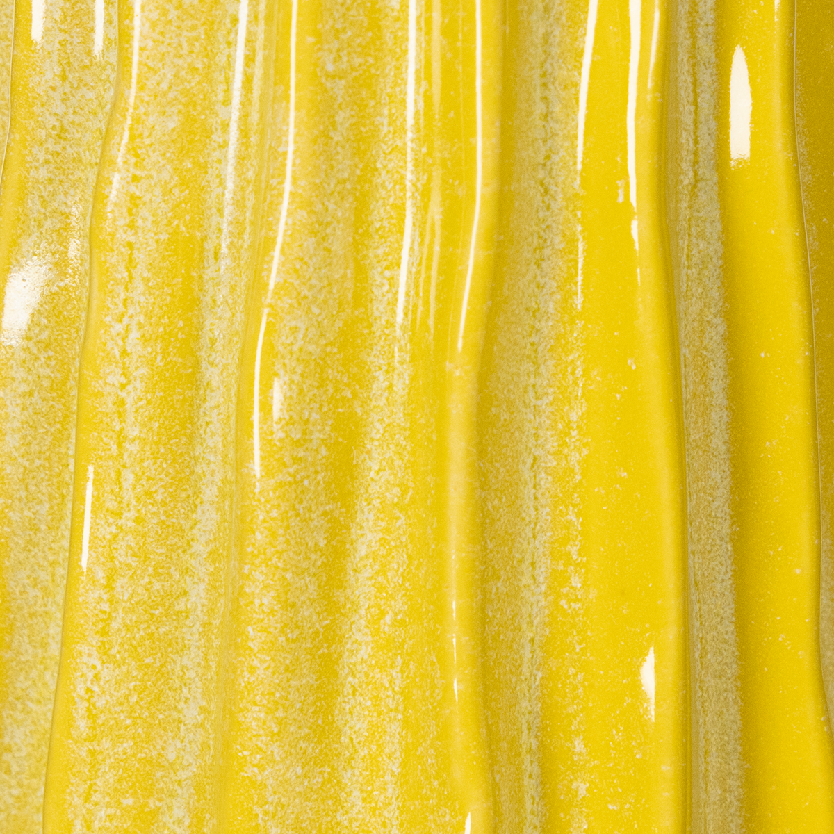 Deze gele, geribbelde vaas is een waar multitalent. Het moderne, geribbelde patroon is een echte blikvanger en biedt talloze decoratiemogelijkheden. De warme kleur brengt zonneschijn in huis en straalt pure levensvreugde uit. Als losstaand object is het een stijlvolle blikvanger die uw interieur visueel verrijkt zonder opdringerig te zijn.