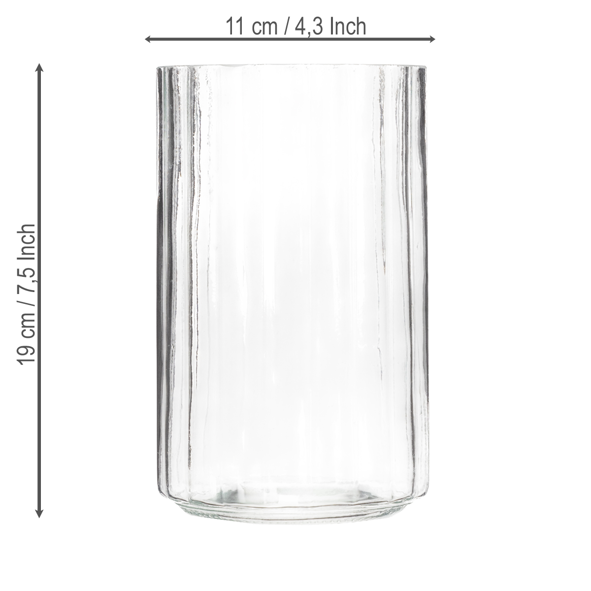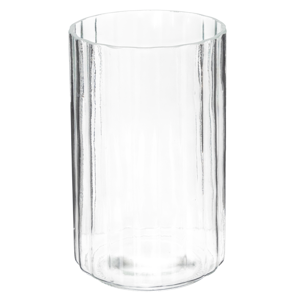 Transparante glazen vaas met streepjespatroon – praktisch en elegant.