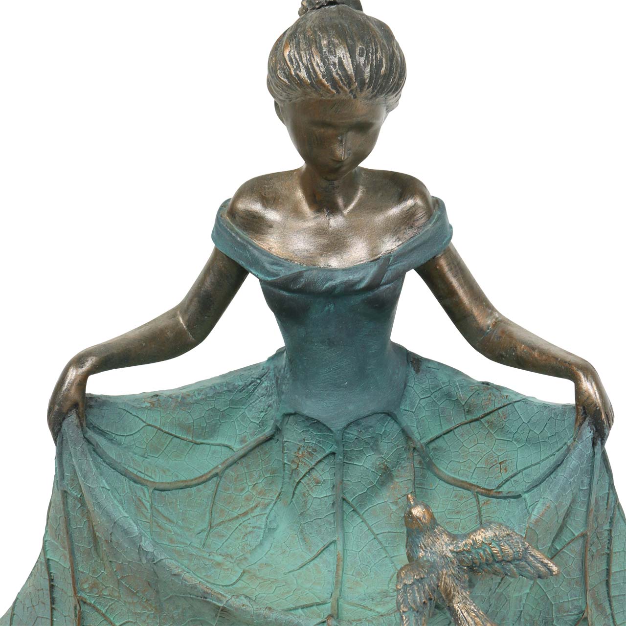 Vogelbad tuinfiguur meisje in bloemenjurk H33.5cm