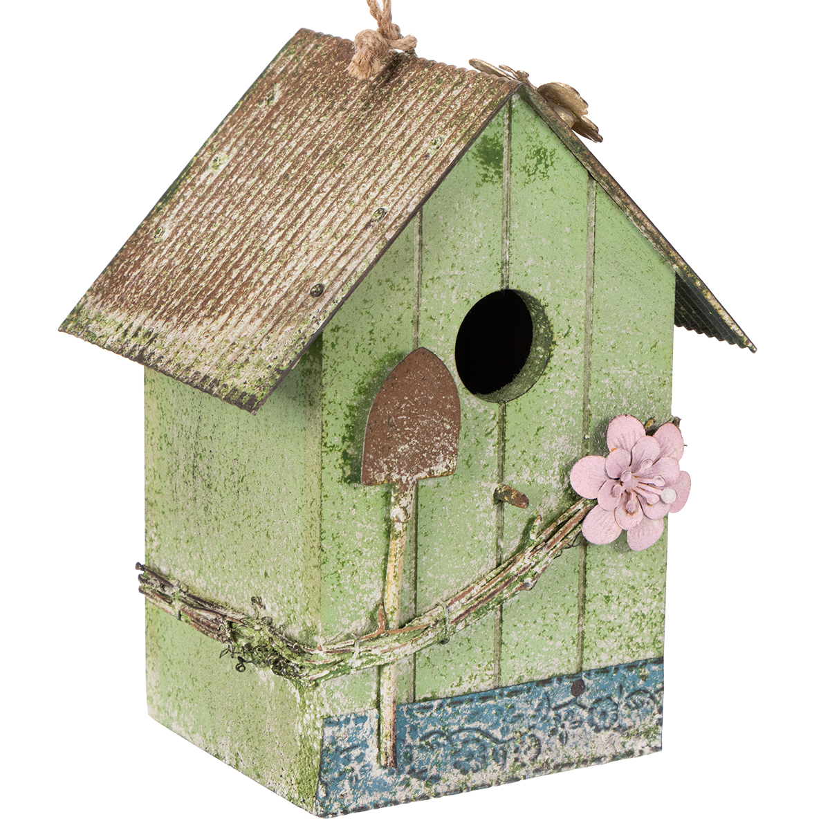 Vogelhuisje met bloemversiering, romantische decoratie voor een landhuis, 19 cm