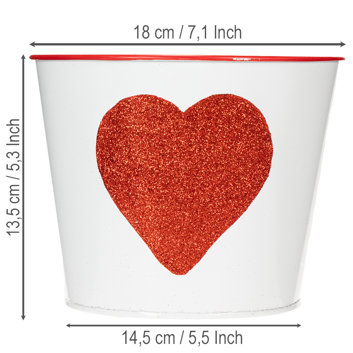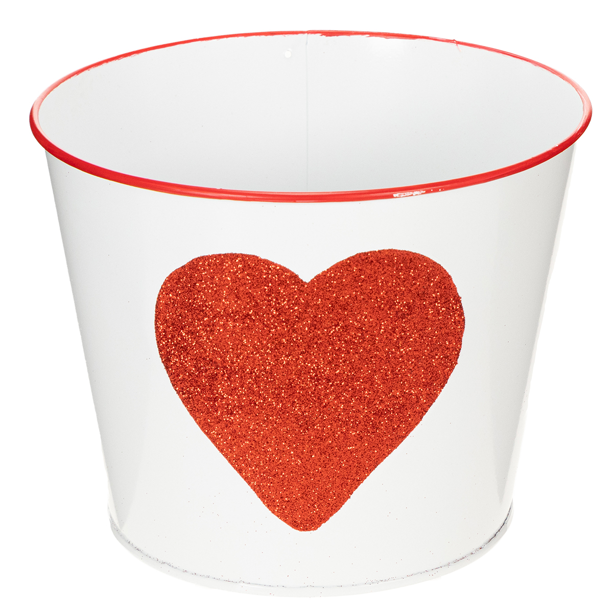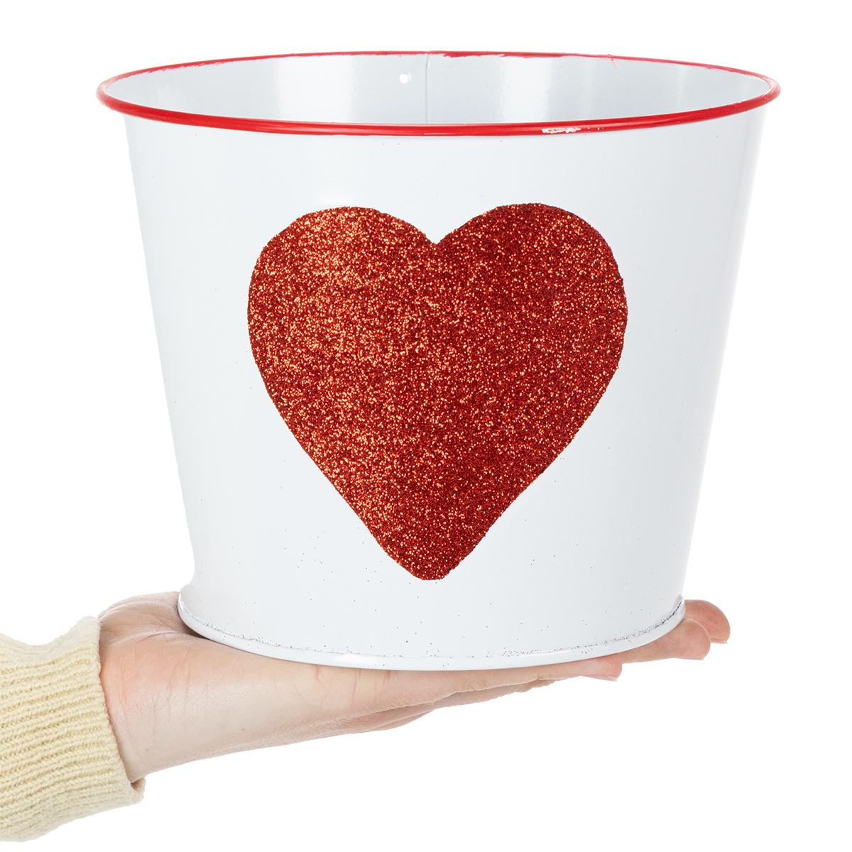 Deze bloempot met glinsterende hartvorm is de ideale plantenbak om orchideeën cadeau te doen op Valentijnsdag. De wit tinnen emmer heeft een heel romantisch hart met rode glitter en een rode rand in het midden. Met zo'n klassiek ontwerp zal mama ook blij zijn met een plant of bloem voor Moederdag.